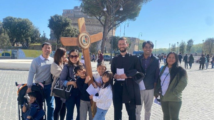 Su un campetto della periferia di Manila, nelle Filippine, tra un tiro a canestro e l’altro, Seth Sabata, sacerdote dei Legionari di Cristo, ha conosciuto due padri di famiglia, con cui è rimasto in contatto dopo il trasferimento in Italia. Oggi li ritrova a Roma, insieme alle rispettive famiglie, per vivere una tappa speciale della loro vita spirituale. "Condividere un’esperienza così intensa è una bellissima opportunità", confida ai media vaticani. Intorno a lui, tre bambini si passano la Croce giubilare come fosse un tesoro: la osservano, la soppesano, si preparano al cammino che, da via della Conciliazione, li porterà fino alle soglie del cuore della cristianità.