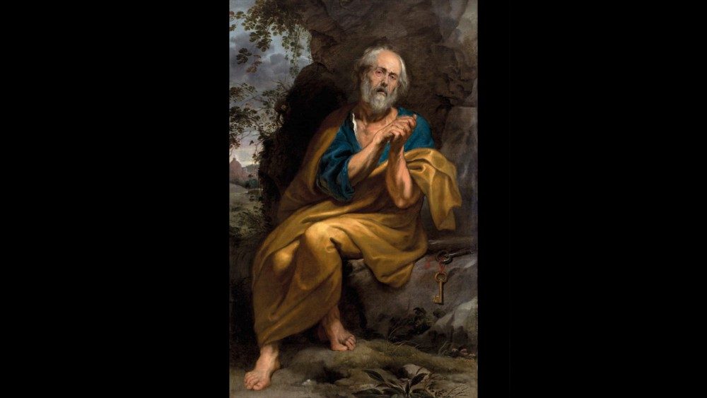 Intensa e drammatica nella sua ambientazione naturale è la figura di San Pietro penitente, eseguita in olio su tela da Anthony Van Dyck, unico dipinto non italiano in rassegna.