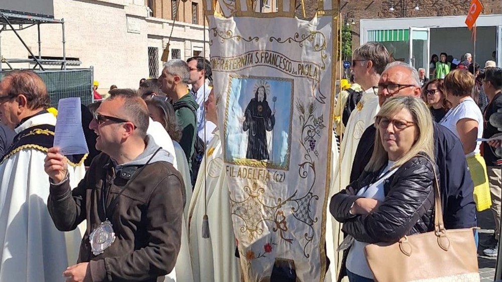 Marcello Carchedi, vice priore della Confraternita di San Francesco di Paola, che opera a Filadelfia, nella provincia calabrese di Vibo Valentia, si avvicina reggendo la Croce giubilare e sottolineando come "la processione nelle vie del paese sia un momento particolarmente suggestivo, ma mai paragonabile a quello che stiamo vivendo in questi giorni nell’Urbe". L’evento giubilare "è un’occasione unica e meravigliosa per riconciliarci con il prossimo e ricordare soprattutto a se stessi di non stancarci mai di perdonare come l’Onnipotente fa con noi. Queste sono le parole che ripeteva spesso Papa Bergoglio e che devono servire da insegnamento per ogni attimo della nostra vita".