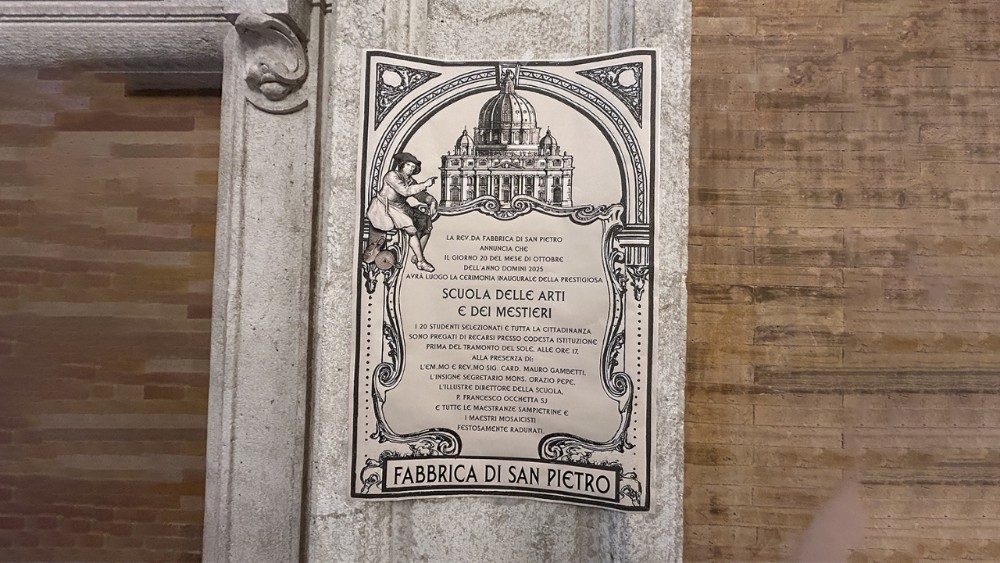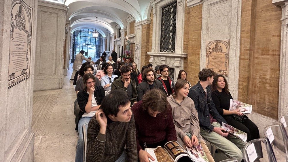 Tutta l’energia di venti giovani studenti che raccoglieranno le eccezionali tecniche trasmesse per la cura della chiesa più grande del mondo hanno illuminato la cerimonia inaugurale della Scuola delle Arti e dei Mestieri. L'appuntamento si è tenuto questa sera alla Fabbrica di San Pietro in Vaticano, che promuove la Scuola insieme alla Fondazione Fratelli Tutti. Gli allievi della nuova edizione sono stati selezionati per il loro entusiasmo, la loro abilità e il desiderio di imparare. Sono tredici ragazze e sette ragazzi, alcuni hanno meno di vent’anni e vengono da tutta Italia, un paio anche dall’estero, precisamente dall'Ecuador. Vogliono vivere quella che sentono come “una meravigliosa esperienza” e “tenere viva la fiamma dell’arte”. Desiderano realizzare un sogno e portare avanti la tradizione con le loro mani e il loro impegno. Ma vogliono anche crescere umanamente, apprendere qualcosa su di sé, sulla propria strada, sulla propria vita.
