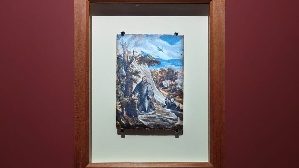 Proviene invece da Napoli, dalla Fondazione Pagliara dell’Università degli Studi Suor Orsola Benincasa, la più minuta tempera su tavola raffigurante San Francesco: un capolavoro giovanile databile intorno al 1570, quando l’artista era documentato a Roma ed era già transitato per le botteghe veneziane di Tiziano e del Tintoretto.