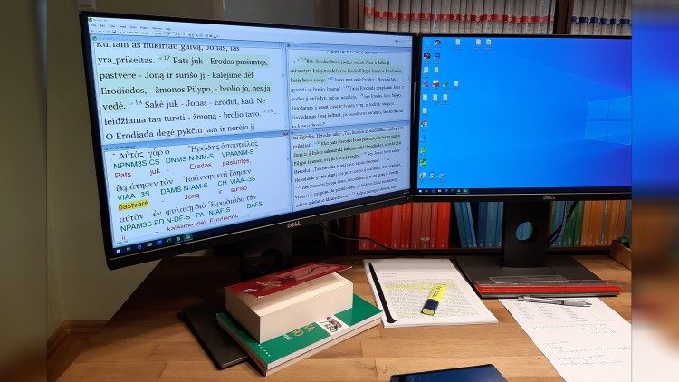 Reikia pastebėti, kad vertimo procesą labai palengvina vertimo programa: vienu paspaudimu galima matyti žodžių gramatines formas, naudotis keturiais žodynais, paieška. „Praėjusiais metais pasiekiau asmeninį rekordą, per mėnesį išverčiau šešiolika Evangelijos pagal Luką skyrių. Tuo tarpu pačioje pradžioje, kai tik pradėjau versti ir šia programa dar nedirbau, per mėnesį išverčiau vos vieną Evangelijos pagal Matą skyrių“, –  dalijasi kunigas. Jis taip pat sako, kad vertėjaudamas po ranka turi keletą vertimų kitomis kalbomis tam, kad galėtų išverstus tekstus palyginti tarpusavyje.
