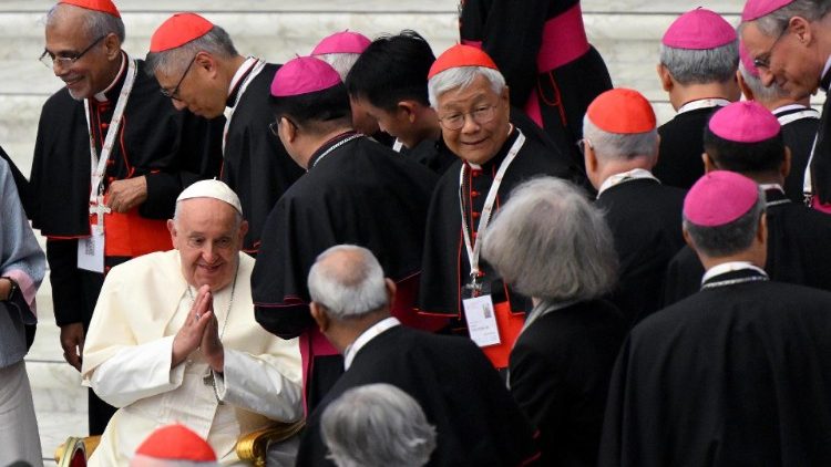 „Šventoji Dvasia skatina Bažnyčią ištikimai vykdyti Viešpaties Jėzaus Kristaus jai suteiktą misiją ir nuolat jo klausyti. Ji veda mokinius į tiesos pilnatvę. Ji veda ir mus, susirinkusius į šią Sinodo asamblėją, kad po trejų metų kelionės suprastume, kaip būti misionieriška sinodine Bažnyčia“, – kalbėjo Pranciškus per pirmąjį ką tik pradėtos Vyskupų sinodo sesijos posėdį. (jm / Vatican News)