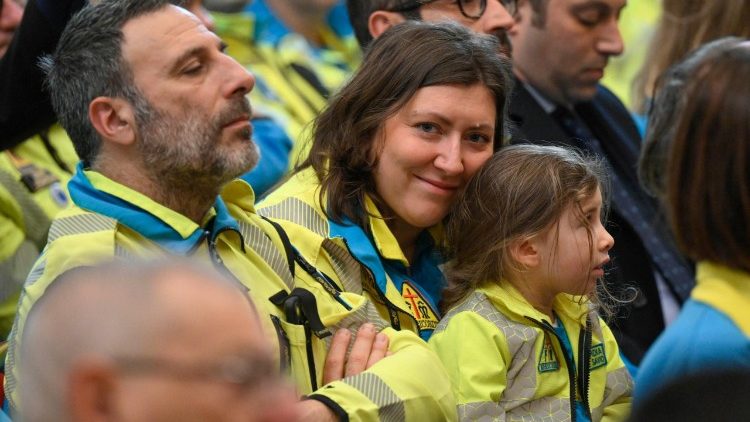 „Jūsų istorija liudija, kad autentiškas tikėjimo gyvenimas negali būti redukuojamas į bekūnį dvasingumą, bet būtinai virsta jautrumu kitų poreikiams ir dosnia, savęs netaupančia tarnyste“, – tęsė popiežius kalbėdamas apie antrąjį – solidarios ir labdaringos artimo meilės – aspektą. Šventasis Tėvas padėkojo tiems „Le Misericordie“ draugijų nariams, kurie ištikimai, ištvermingai, asmeniškai paaukodami labai daug, vykdė prisiimtus uždavinius kasdienybėje arba ekstremaliose situacijose, savo kvartale ar ten, kur nėra taikos ir viską pasiglemžia karas.