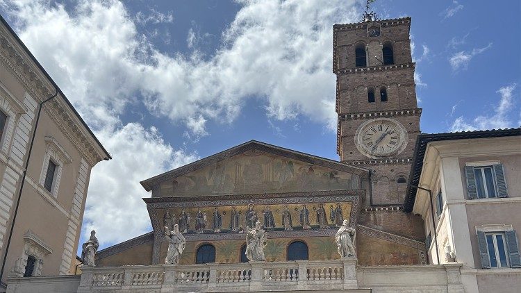 W tym miejscu już około 340-350 roku staraniem papieża Juliusza I zbudowano kościół, później wielokrotnie przebudowywany. Dziś świątynia przyciąga uwagę już swoją architekturą zewnętrzną, zwłaszcza portykiem z pięcioma łukami, dzwonnicą i umieszczonymi w górnej części fasady mozaikami ilustrującymi przypowieść Jezusa o pannach nierozsądnych i roztropnych.