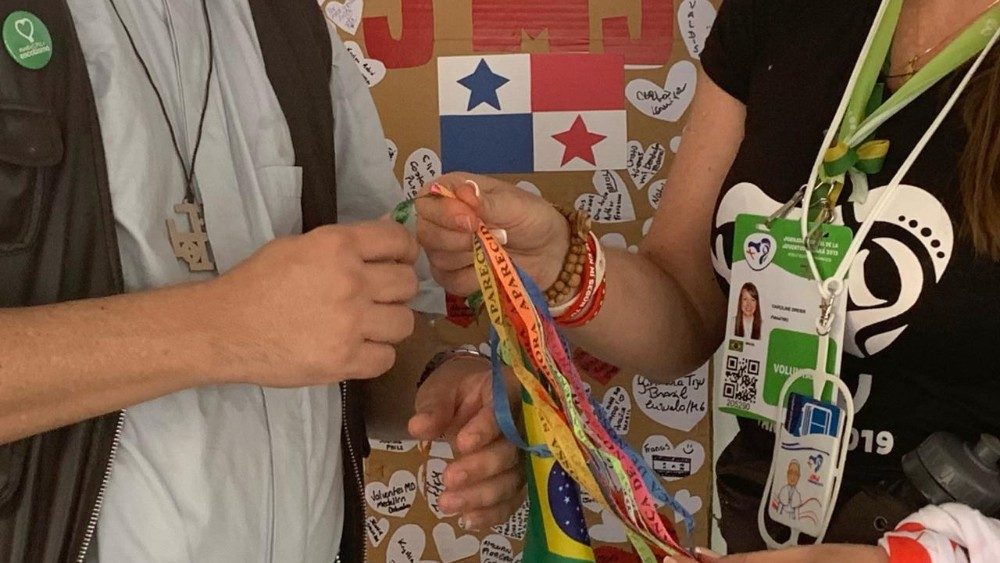 A gaúcha comenta que o objetivo maior não é esse, mas “é rezar e trabalhar em comunhão, em oração e adoração ao Santíssimo, participar das missas e catequeses. O intercâmbio de lembrancinhas, porém, é muito gostoso já que cada um leva pra casa um pedacinho do mundo”. Caroline já trocou lembranças com peregrinos do Canadá, Polônia, França, Espanha, Argentina e Bielorrússia: “trouxe 2 mil fitinhas e estou distribuindo aos panamenhos e durante a nossa integração, no trânsito, no ônibus, no táxi e nos estabelecimentos, principalmente para crianças e idosos”.