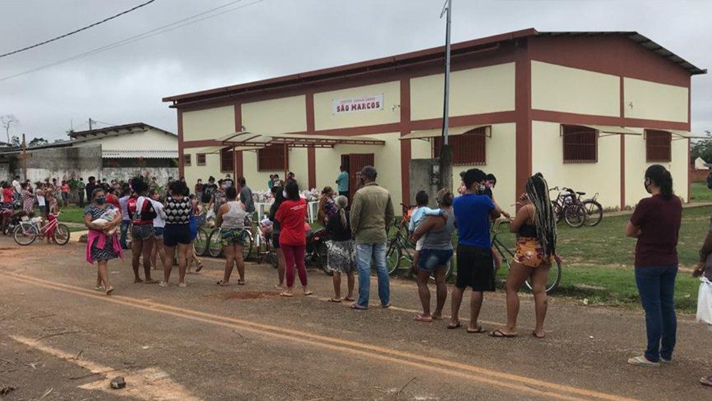 Com as aglomerações proibidas durante esta fase de crise sanitária, a opção foi criar uma nova modalidade para ajudar os moradores do bairro, com o supermercado solidário “Pegue e Não Pague” que chega a beneficiar 3.300 famílias que vivem no local. Pe. Massimo, junto com o apoio da Irmã Izelba, coordena os moradores no dia de mercado, que usam máscaras e respeitam o distanciamento social na fila à espera das cestas básicas.
