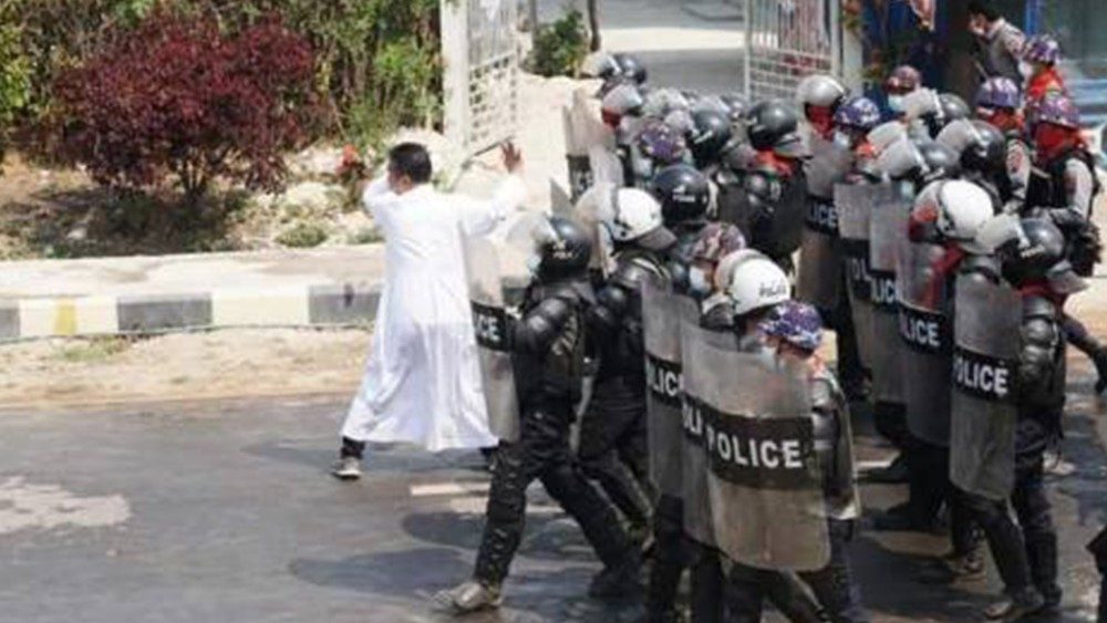 A exemplo do que já havia ocorrido em pelo menos duas oportunidades com religiosas, para evitar a violência, o padre Celso Ba Shwe - administrador diocesano de Loikaw (Diocese sede vacante após a recente morte do bispo) - e um pastor protestante, se posicionaram entre as duas partes, implorando aos agentes para deter o avanço e não atirarem contra os manifestantes. “Vamos convencê-los a voltar para casa. Deem-nos um pouco de tempo. Não queremos que sangue banhe nossa terra”, implorou padre Celso Ba Shwe aos policiais.