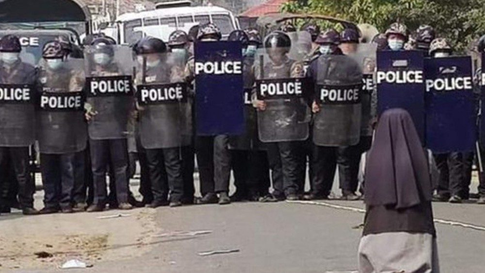Em meio aos protestos e à violência, chamou a atenção o gesto de uma freira nas ruas da cidade de Myitkyina, capital do Estado de Kachin, norte de Minamar, que implorou de joelhos às forças de segurança para que não atirassem nos jovens manifestantes que protestavam pacificamente. Irmã Ann Nu Thawng, da Congregação de São Francisco Xavier, Instituto de direito diocesano em Myitkyina, acabou se tornando o símbolo de um domingo sangrento.