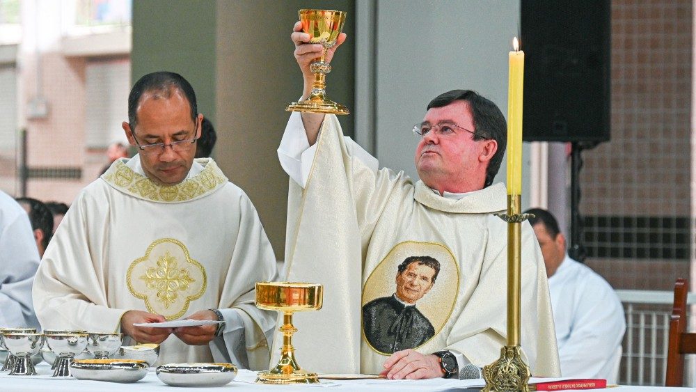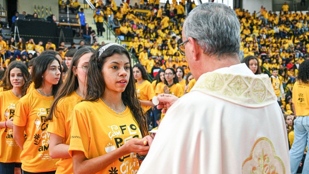 O padre Rafael Galvão, responsável pela Pastoral Vocacional dos Salesianos, acolheu os jovens e ofereceu a Santa Missa, que foi a primeira atividade do evento, para a juventude que não conhece a “civilização do amor”, tema do Festival deste ano. A Santa Missa, presidida pelo inspetor da Inspetoria Nossa Senhora Auxiliadora, padre Justo Ernesto Piccinini, começou com um minuto de silêncio pelas vidas perdidas na Guerra da Ucrânia e no conflito entre Israel e Hamas.