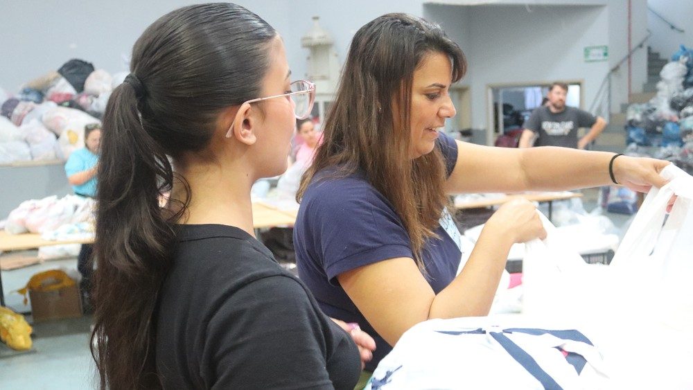 Em Caxias do Sul, no Seminário Nossa Senhora Aparecida, a diocese e a sociedade civil junto com o Poder Público, mantém um centro de operações e triagem de doações que são enviadas para todo o Rio Grande do Sul. A Márcia Fontes Machado levou o marido e as duas filhas para serem sinais de solidariedade. Ao deixar uma mensagem para mães que estão desabrigadas neste momento, ela se emocionou: “continuem fortes, porque fortes vocês são. Com fé em Deus, a gente vai passar por isso”.