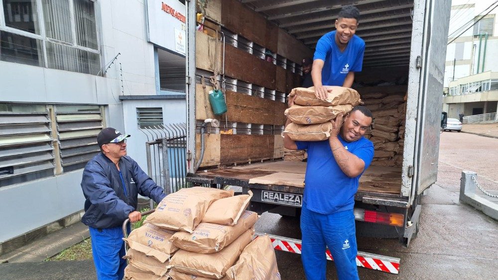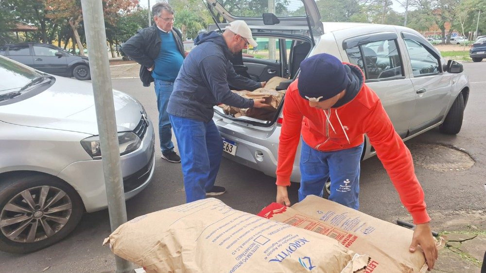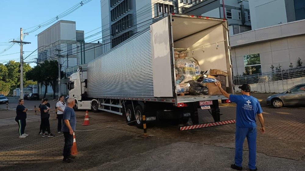 A solidariedade continua chegando de todo o país. No último domingo, chegou ao Mensageiro da Caridade um grande carregamento proveniente de Curitiba. Na carga constam produtos como água, alimentos não perecíveis, roupas, ração animal e material de higiene e limpeza. Segundo o Supervisor Administrativo, Alcione Peruzzo, o descarregamento contou com apoio de uma grande equipe de voluntários. “A solidariedade se expressa de muitas formas, desde quem se mobiliza, de quem transporta, até quem ajuda na organização local, prestando esse serviço voluntário”.