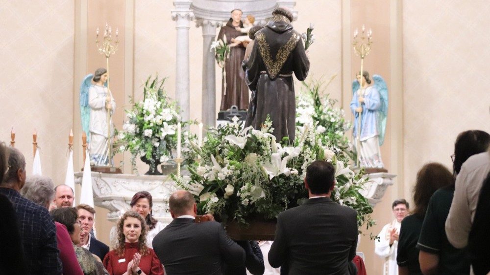 E, na conclusão da Missa, padre Volmir fez o anúncio do lema da 147ª Festa de Santo Antônio, de 13 de junho de 2025: “Pelo olhar de Santo Antônio contemplamos a criação”, em comunhão com a Campanha da Fraternidade 2025, que irá abordar a encíclica Laudato Si’, do Papa Francisco.