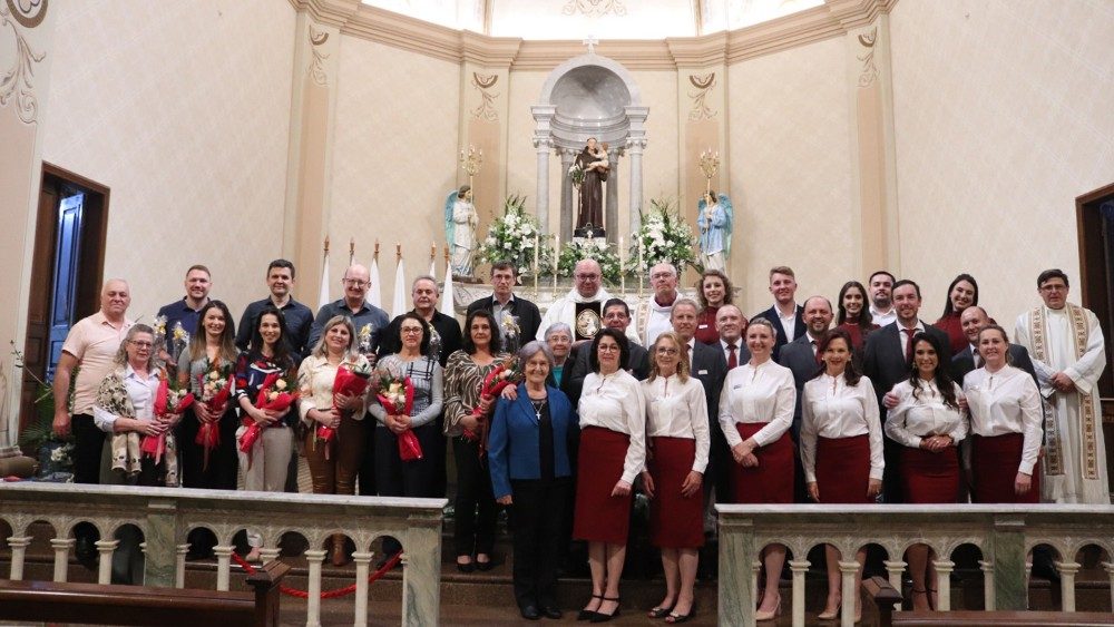 Já na Missa das 18h, a celebração em ação de graças pelo êxito dos festejos de 2024, o casal coordenador dos festeiros, Iomar e Ana Coser Mazutti, fez o agradecimento a todas as equipes e comissões, patrocinadores e apoiadores que, juntamente com os festeiros e festeiros jovens, concretizaram os festejos de 2024. “Todos juntos, empenhados num mesmo ideal, cada um com sua personalidade, características e qualidades, nos tornamos um grupo forte capaz de comemorar as alegrias e também de se apoiar pra corrigir os erros juntos, sempre que necessário! Juntos vivemos o nosso lema: “Do coração de Santo Antônio brota a fraternidade”, salientou o casal.
