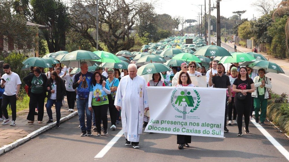 A programação iniciou na avenida Dom José Barea com uma caminhada rumo ao Santuário, onde Dom Odair Miguel Gonsalves dos Santos, bispo auxiliar da Arquidiocese de Porto Alegre e referencial para a Pastoral da Criança do Estado do Rio Grande do Sul, presidiu a celebração eucarística, concelebrada por Dom José Gislon, bispo da Diocese de Caxias do Sul, como anfitrião, concelebrada por sacerdotes oriundos das diversas dioceses do Estado. Na procissão de entrada, cada diocese se fazia representar com o banner de identificação.