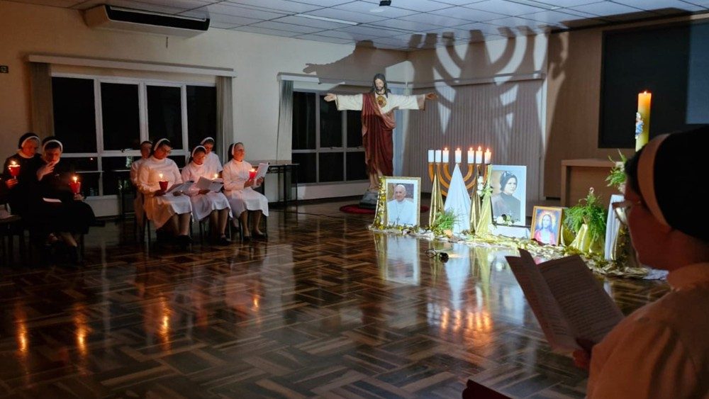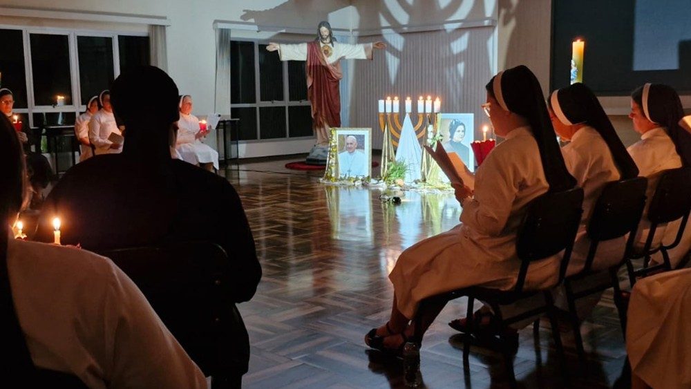 O Papa Francisco está internado no Hospital Gemelli, de Roma, há quase um mês e as iniciativas de oração pela sua recuperação são multiplicadas diariamente, inclusive no Brasil. No último domigo (09/03), por exemplo, as Apóstolas do Sagrado Coração de Jesus realizaram um momento celebrativo especial em São Paulo durante a reunião das superioras, assessoras e animadoras vocacionais. Na ocasião, em clima de profunda oração e comunhão, rezaram pelo Papa Francisco, suplicando a Deus, pela intercessão da Bem-aventurada Clélia Merloni, o dom da saúde ao Pontífice. O encontro, marcado pela espiritualidade e unidade, reafirmou o compromisso do Instituto com a Igreja e com a missão evangelizadora, demonstrando a força da oração comunitária na vida eclesial.