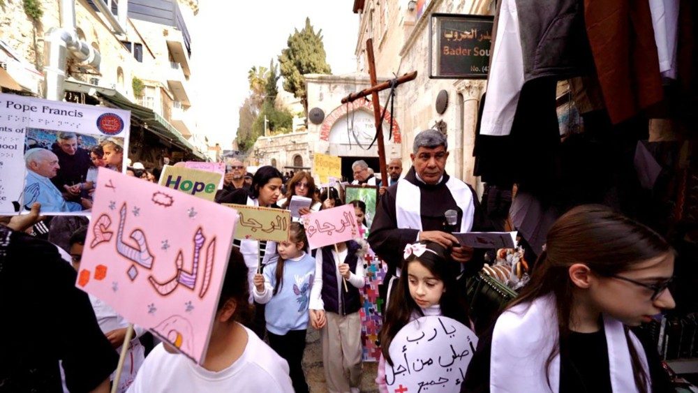 Na segunda sexta-feira da Quaresma, cerca de mil estudantes de escolas cristãs de Jerusalém, acompanhados pelo Custódio da Terra Santa, Padre Francesco Patton, e pelo Padre Ibrahim Faltas, vigário custodial e diretor das escolas da Terra Santa da Custódia, participaram da Via-Sacra que seguiu a Via Dolorosa. O título deste ano “A esperança que não engana” teve como referência ano do Jubileu e o apelo urgente pela paz no Oriente Médio.