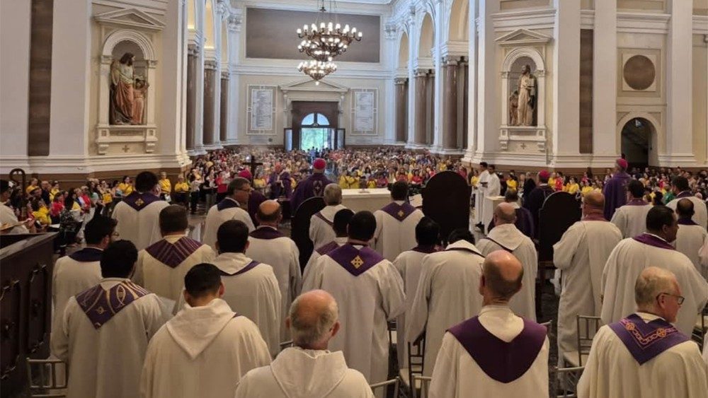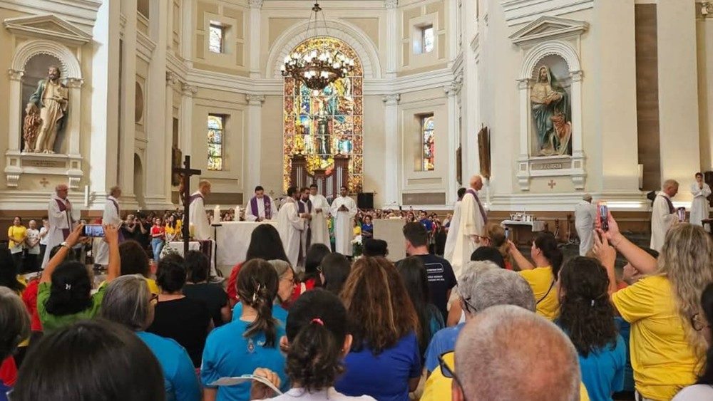 A Arquidiocese de Porto Alegre, Rio Grande do Sul, por meio da Comissão de Animação Bíblico-Catequética, celebrou no último domingo, 16/3, o Jubileu dos Catequistas e Envio do Mandato Missionário de Catequistas para o ano de 2025. Aproximadamente 1600 catequistas, de todas os oito Vicariatos da Arquidiocese, participaram da celebração que foi realizada na Catedral Metropolitana Mãe de Deus, uma das Igrejas Jubilares de Porto Alegre, que permite aos peregrinos receberam a Indulgência Plenária, dadas as condições exigidas pelo Ano Jubilar. Pe. Rogério Luis Flores, pároco da Catedral, deu as boas-vindas a todos os catequistas, bispos, sacerdotes para a Catedral, Igreja Mãe da Arquidiocese, lotada nesse dia: “Esperamos uma celebração muito rica, animando todos os nossos catequistas, para sermos de fato todos peregrinos de esperança”.