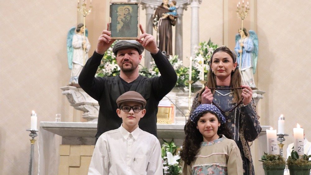E, na conclusão da Missa, padre Volmir fez o anúncio do lema da 148ª Festa de Santo Antônio, de 13 de junho de 2026: “Na Casa de Santo Antônio somos todos irmãos”, em comunhão com a Campanha da Fraternidade 2026, que irá abordar a temática da moradia, a partir do lema: "E veio morar entre nós” (Jo 1,14).