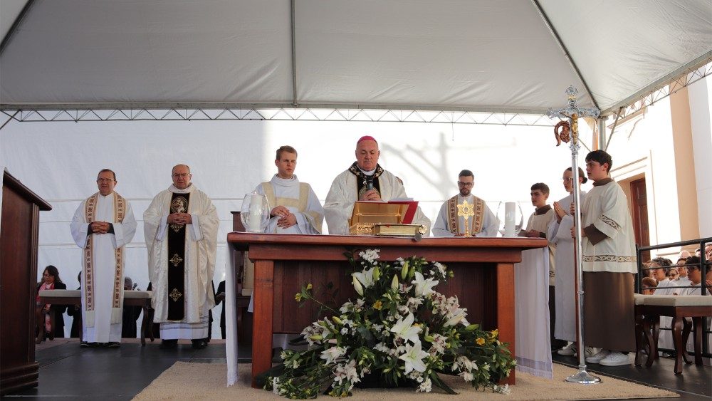 “Pelo olhar de Santo Antônio contemplamos a criação”, inspirado na temática da Campanha da Fraternidade 2025, é o lema da 147ª Festa de Santo Antônio de Bento Gonçalves, que teve sua culminância na sexta-feira, 13 de junho. O Dia Festivo foi marcado pela alvorada festiva, com o toque dos sinos no Santuário Diocesano de Santo Antônio. Com sol, apesar do frio e do vento, a programação foi intensa, contando com cinco Missas, sendo uma delas realizada no lado externo do Santuário, seguida de procissão, além do almoço de confraternização.