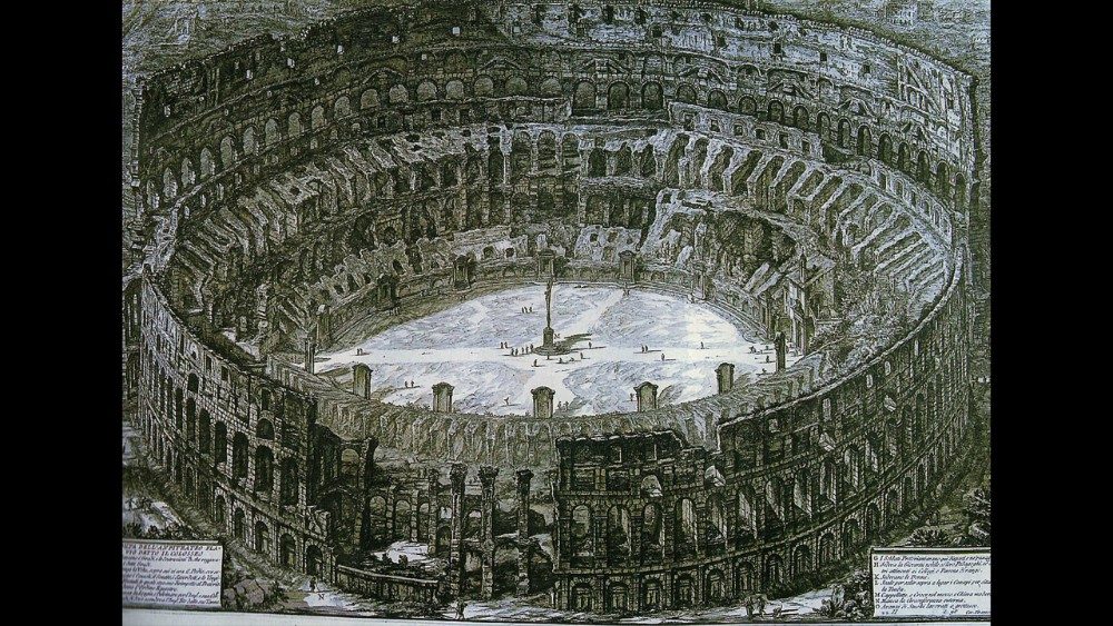 Para os peregrinos medievais, o Coliseu era um edifício enigmático: sua imponência inspirava mais admiração do que compreensão; as descrições enfatizavam sua grandeza e a ambiguidade de sua função original. A natureza do anfiteatro foi esclarecida apenas na era moderna. Ao mesmo tempo, porém, começava a se concretizar uma interpretação devocional, associada ao martírio dos cristãos. O projeto de Carlo Fontana (1638-1714) para a construção de uma igreja dentro do Coliseu, em 1725, já testemunhava a tentativa de reinterpretação.