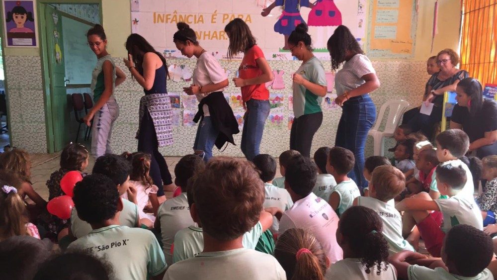 A propósito dessa problemática existente também no Brasil, nós contatamos Elivania Rodrigues da Silva do Município de São Mateus (ES), membro da Comunidade Catedral. Ela trabalha na Secretaria Municipal de Educação e tem a função de coordenar o projeto do Ministério Público do Trabalho na Escola (MPT na Escola) em parceria com a Prefeitura de São Mateus por meio da Secretaria Municipal de Educação.