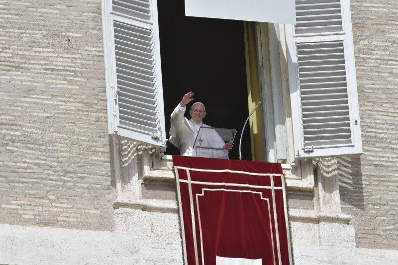 Papa reza o Angelus da janela do apartamento pontifício no Palácio Apostólico Papa reza o Angelus da janela do apartamento pontifício no Palácio Apostólico