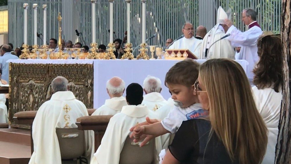 “Queridos irmãos e irmãs, escolhamos este alimento de vida: ponhamos em primeiro lugar a Missa, voltemos a descobrir a adoração nas nossas comunidades! Peçamos a graça de nos sentirmos esfomeados de Deus, de nunca nos fartarmos de receber o que Ele prepara para nós.”