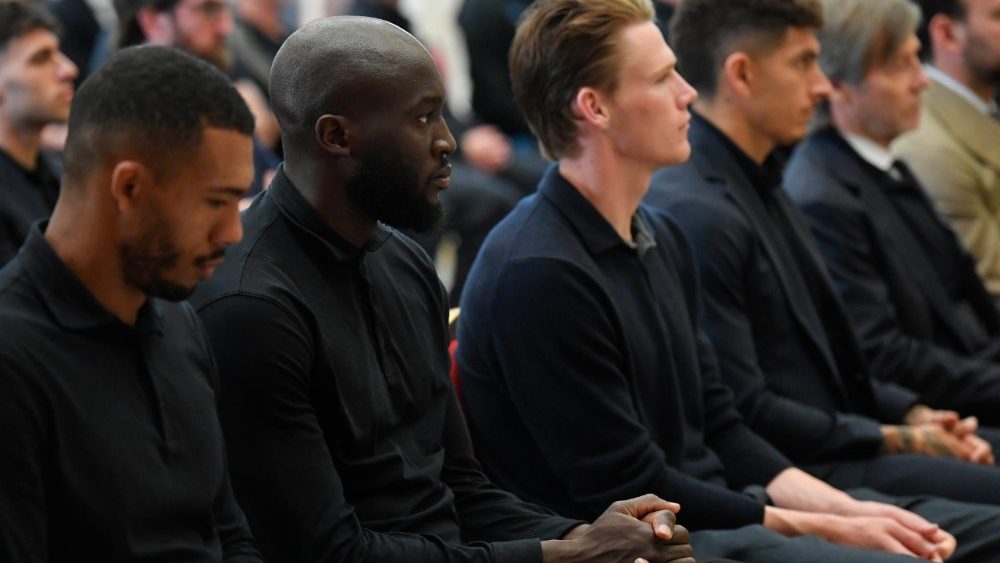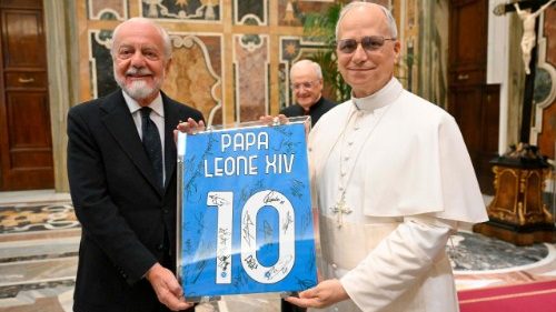 Na vitória de 2 a 0 sobre o Cagliari que rendeu o tetracampeonato para o Napoli, com apenas um ponto a frente da Inter de Milão na disputa do troféu da Série A 2024/25, também estava o argentino Giovanni Simeone, que participou da audiência nesta terça-feira (27/05) no Vaticano. Outro jogador junto com Juan Jesus de trajetória fundamental na temporada, Simeone lembrou inclusive da história de Maradona no mundo napolitano e na própria Itália neste momento de grande festa no sul do país. Cada um com uma prestação diferente dada ao Napoli e no seu período de tempo, mas prevalecendo sempre o espírito de equipe, disse Simeone, através da mensagem de Leão XIV: