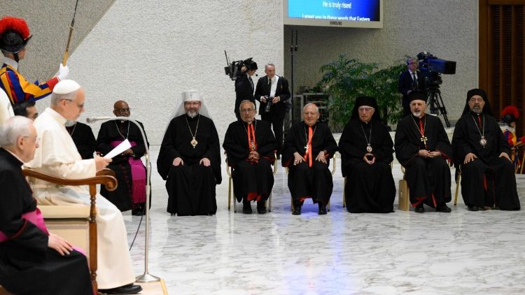 "São Igrejas que devem ser amadas", citando o Papa Francisco, pelos "tesouros inestimáveis", pela "vida cristã, sinolidade e liturgia"; com "um papel único e privilegiado", como escreveu também João Paulo II. Já Leão XIII, recordou ainda o Papa, "foi o primeiro a dedicar um documento específico à dignidade das Igrejas" Orientais pela "legítima diversidade da liturgia e da disciplina orientais". Na Carta Orientalium Dignitas (30 de novembro de 1894), Leão XIII também demonstrou uma preocupação que ainda é atual, pelo fato de muitos fiéis orientados serem "forçados a fugir dos seus território de origem por causa da guerra e perseguições, da instabilidade e pobreza", correndo o risco de, "ao chegarem no Ocidente, de perder, além da pátria, também a própria identidade religiosa. E, assim, com o passar das gerações, se perde o inestimável patrimônio das Igrejas Orientais".