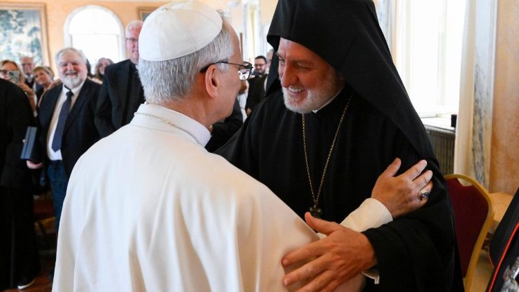 Ao mencionar a visita que os peregrinos farão a Constantinopla, Leão XIV pediu que levassem sua saudação fraterna ao Patriarca Bartolomeu e manifestou o desejo de reencontrá-lo na comemoração ecumênica pelos 1700 anos do Concílio de Niceia, marcada para os próximos meses. O Santo Padre também destacou os frutos do movimento ecumênico nas últimas décadas, sublinhando o gesto profético de reconciliação protagonizado por São Paulo VI e o Patriarca Atenágoras em 1965, quando foi retirada a memória das mútuas excomunhões de 1054: