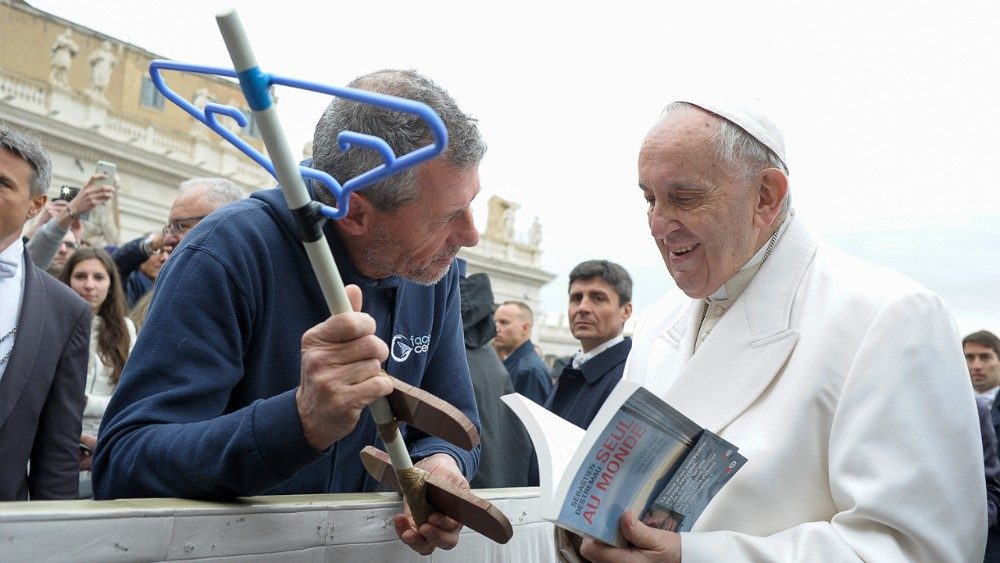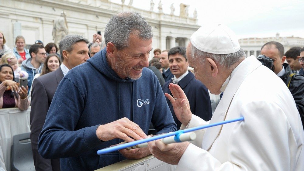 E “em nome de todos os que enfrentar o mar, todos os dias, trabalhando ou à procura de uma vida melhor”, o velejador francês veio a Roma, no início de abril, e na Praça São Pedro, entregou ao Papa a sua obra. Sébastien estava acompanhado pelo Padre Vincent Lautram, idoso pároco de Sables d’Olonne, de onde a regata tem início e fim. É dele a ideia de instalar no pequeno porto uma imagem da Virgem negra do Santuário de Rocamadour, protetora de todos os navegantes. Depois de quase três meses no mar, naquele exato ponto da travessia, em último lugar na competição, Sébastien decidiu confeccionar a chave com o material que dispunha a bordo.