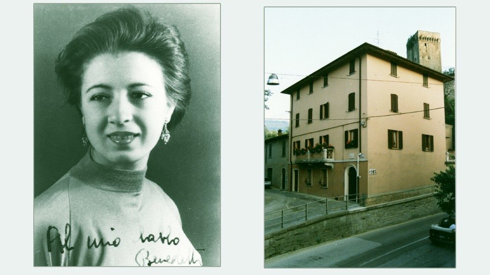 Benedita nasceu em Dovádola, província e diocese de Forlì, em 8 de agosto de 1936. Aos três meses, foi acometida pela doença da poliomielite. Recuperou-se, mas ficou com uma perna mais curta.