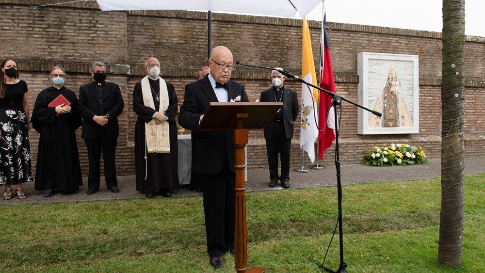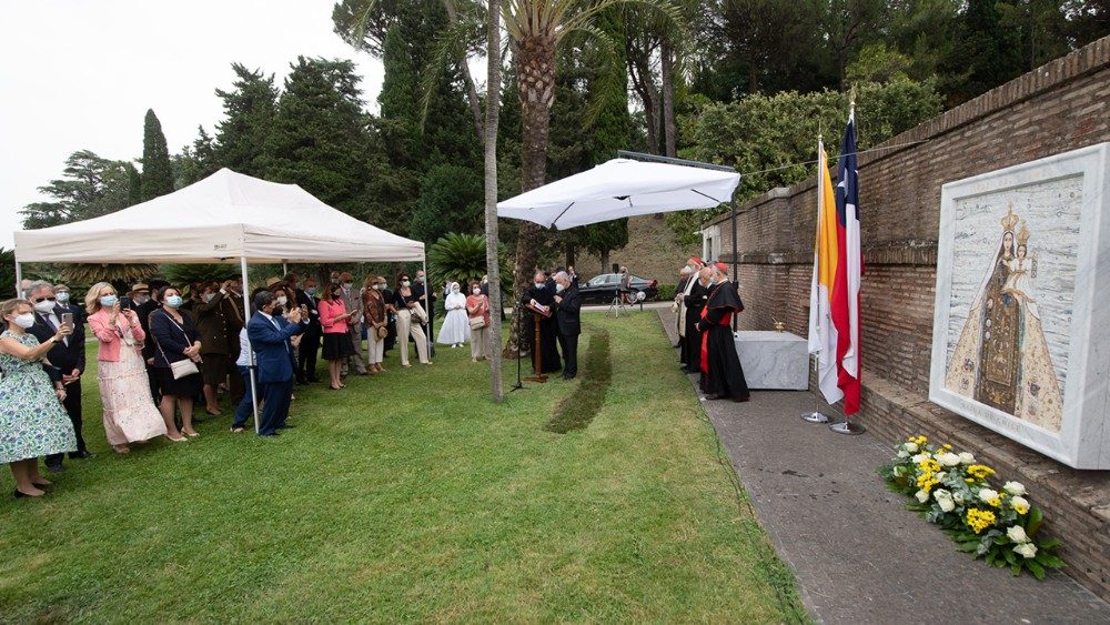 A cerimônia de bênção, que contou com a presença de membros da comunidade chilena residente na Itália, foi presidida pelo cardeal Giuseppe Bertello, presidente do Governatorato do Estado da Cidade do Vaticano, na presença do cardeal capuchinho Celestino Aós Braco, arcebispo de Santiago do Chile, que abençoou a imagem sagrada, e do bispo salesiano Alberto Ricardo Lorenzelli Rossi, seu auxiliar.