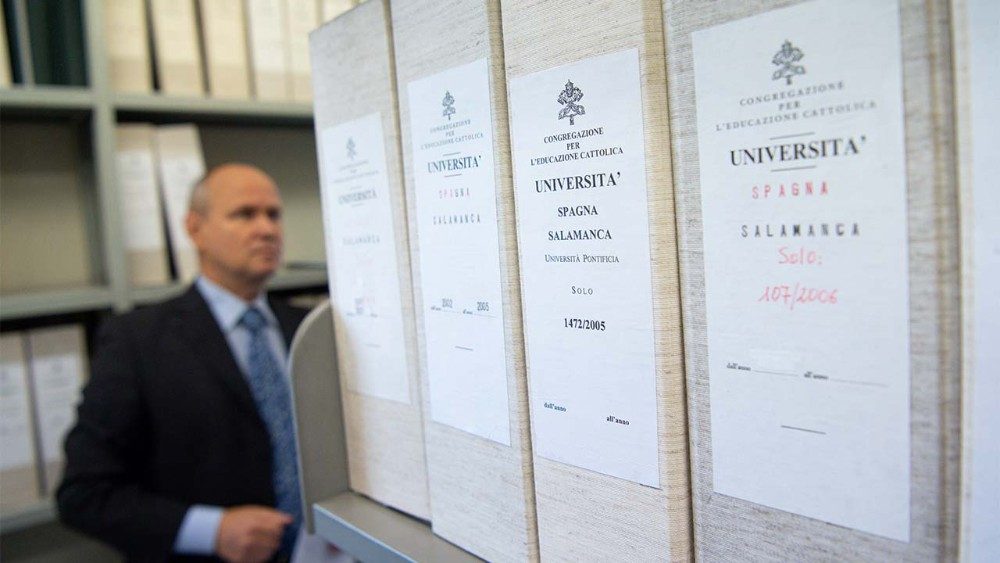 Além disso, uma competência específica da Congregação diz respeito às Universidades e Institutos de Estudos Eclesiásticos. Implementando a Constituição Apostólica Veritatis gaudium, (aprovada pelo Papa Francisco em 8 de dezembro de 2017), ratifica os estatutos de tais instituições, exerce alta direção sobre elas e assegura que no ensino doutrinário a qualidade seja garantida e a integridade da fé católica seja salvaguardada. Existem cerca de 217 mil escolas católicas no mundo, com mais de 60 milhões de alunos. As Universidades católicas são 1.360 e as Universidades e Faculdades eclesiásticas, com seus Institutos afiliados e associados são 487. Há cerca de 11 milhões de estudantes em instituições de ensino superior.