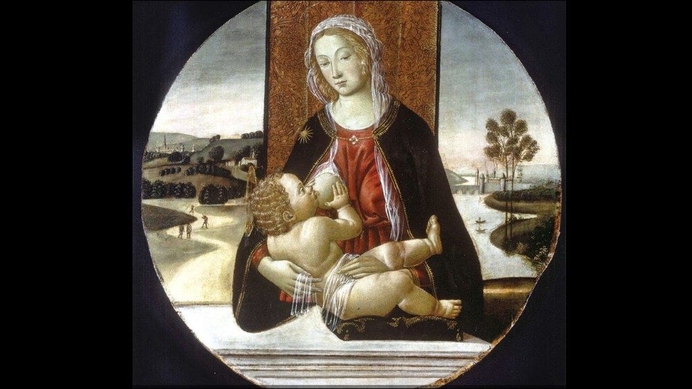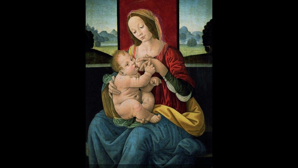 No dia em que se celebra Santa Maria Mãe de Deus, a mente dirige-se imediatamente às inúmeras obras, de pintura ou de escultura, que povoam a arte de todos os tempos com a imagem da Virgem com o Menino. As variantes dizem respeito à Madonna sentada em um trono ou em pé, isolada ou rodeada por anjos ou santos, com ofertantes em oração a seus pés.