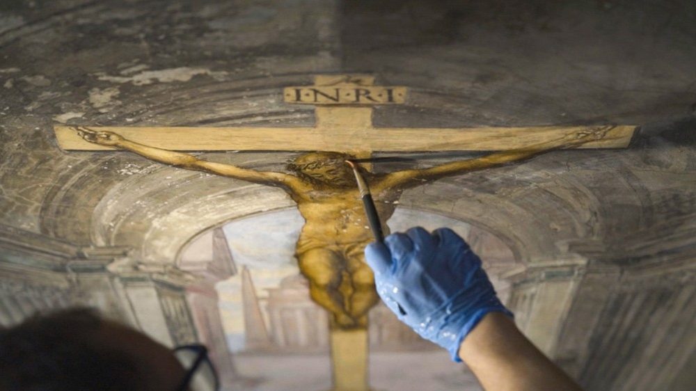 С марта 2015 года команда Лаборатории реставрации живописи и деревянных материалов Ватиканских музеев под руководством Франчески Персегати, а также нынешнего директора Ватиканских музеев Барбары Ятты и бывшего многолетнего директора Антонио Паолуччи шаг за шагом раскрывала скрытые слои прошлого. Начав со стены «Видение Креста», специалисты завершили проект в декабре 2024 года, восстановив свод, украшенный огромным расписным полотном.