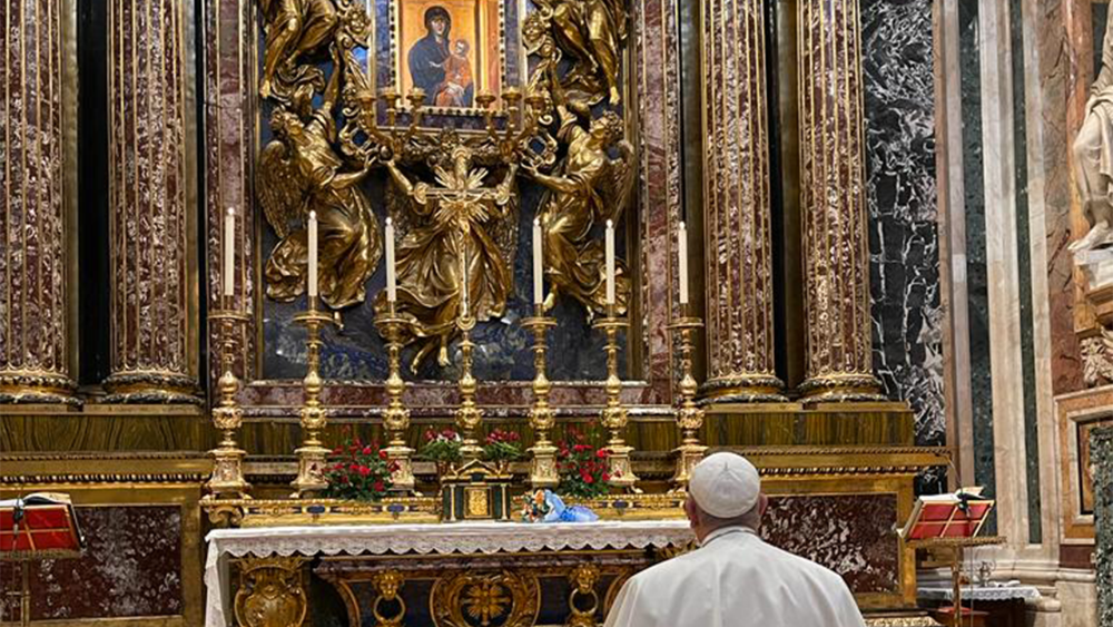 Deň pred začiatkom svojej 35. zahraničnej apoštolskej cesty, ktorej cieľom je Cyprus a Grécko, zveril Svätý Otec ako zvyčajne celé podujatie do ochrany Presvätej Bohorodičky. V dnešnú stredu popoludní prišiel do Baziliky Santa Maria Maggiore a zotrval v tichej modlitbe pred milostivou ikonou Salus Populi Romani.