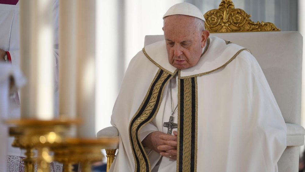 Synoda nám slúži na to, aby nám to pripomenula: naša Matka Cirkev vždy potrebuje očistenie, „opravu“, pretože my všetci sme hriešnici, ktorým bolo odpustené – sme oboje: hriešnici, ktorým bolo odpustené -, vždy sa potrebujeme vrátiť k prameňu, ktorým je Ježiš, a znovu sa vydať na cesty Ducha, aby sme všetkým priniesli jeho evanjelium. František z Assisi v čase veľkých bojov a rozdelení, medzi svetskou a náboženskou mocou, medzi inštitucionálnou Cirkvou a heretickými prúdmi, medzi kresťanmi a ostatnými veriacimi, nikoho nekritizoval ani sa voči nikomu nevyhraňoval a siahal len po zbraniach evanjelia, teda po pokore a jednote, modlitbe a láske. Robme aj my to isté! Pokora a jednota, modlitba a dobročinná láska.