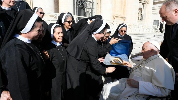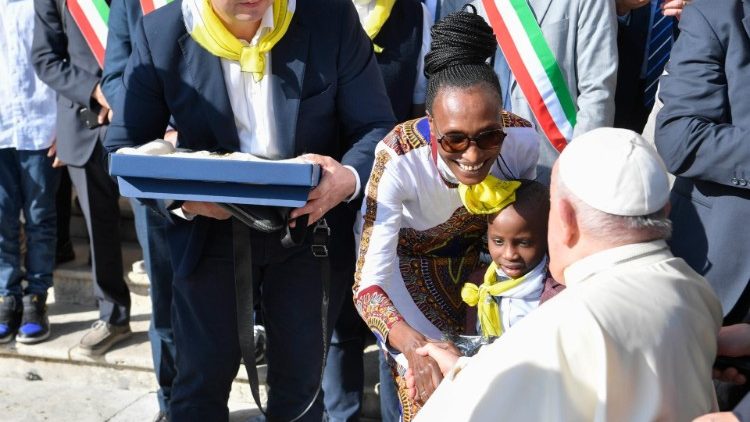 Pri tomto všetkom sa pýtam: aké je tajomstvo svätej Bakhity? Vieme, že zranený človek často zranenia opätuje. Utláčaný človek sa ľahko stane utláčateľom. Naopak, povolaním utláčaných je oslobodiť seba a svojich utláčateľov tým, že sa stanú obnoviteľmi ľudskosti. Len v slabosti utláčaných sa môže prejaviť sila Božej lásky, ktorá oslobodzuje oboch. Svätá Bakhita túto pravdu vyjadruje veľmi dobre. Jedného dňa jej opatrovateľ daroval malý krížik a ona, ktorá nikdy nič nevlastnila, si ho uchovávala ako vzácny poklad. Pri pohľade naň prežívala vnútorné oslobodenie, pretože sa cítila pochopená a milovaná, a preto bola schopná chápať a milovať: to bol začiatok. Cítila sa pochopená, milovaná a schopná pochopiť a milovať iných. V skutočnosti povedala: „Božia láska ma vždy sprevádzala tajomným spôsobom... Pán ma tak veľmi miloval: treba milovať všetkých... Treba s nimi súcitiť!“ Takáto bola duša Bakhity. Skutočne súcitiť znamená trpieť s obeťami toľkej neľudskosti vo svete, ale aj súcitiť s tými, ktorí sa dopúšťajú chýb a nespravodlivosti, neospravedlňovať, ale poľudšťovať: Toto je pohladenie, ktoré nás učí, aby sme sa stali ľuďmi. Keď sa dostaneme do logiky boja, rozdelenia medzi nami, zlých pocitov, keď sme jeden proti druhému, tak strácame ľudskosť. A mnohokrát si myslíme, že potrebujeme ľudskosť, aby sme boli ľudskejší. Potrebujeme viac ľudskosti. A to je práca, ktorú nás učí svätá Bakhita: poľudštiť sa, poľudštiť seba a poľudštiť druhých.