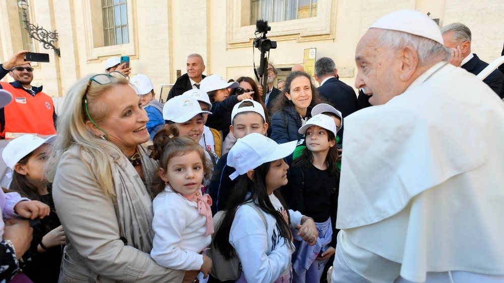 „Myslime na národy, ktoré trpia vojnou a modlime sa za ne. Nezabúdajme na sužovanú Ukrajinu a myslime na palestínsky a izraelský ľud: nech Pán prinesie spravodlivý mier. Je tu toľko utrpenia: trpia deti, trpia chorí, starí a zomiera mnoho mladých ľudí. Vojna je vždy porážkou: nezabúdajme. Vždy je to porážka.“