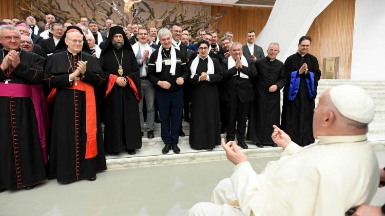 Rímsky biskup zdôraznil, že tvorenie pokoja „sa začína v srdci každého z nás“, keď sa denne rozhodneme „či chceme žiť ako muž alebo žena pokoja“, „keď sa rozhodneme odpustiť“ a to „naplní naše srdce radosťou“. Potom sa pápež obrátil na prítomných biskupov, kňazov a zasvätené osoby: