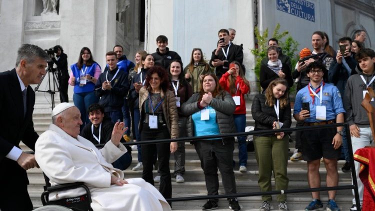 Stretnutie s mladými ľuďmi, Námestie pred Bazilikou Panny Márie Uzdravenie chorých, Benátky, 28. apríla 2024