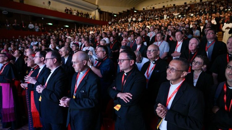 Drahí bratia v kňazstve, vďaka vám, ktorí ste prišli zďaleka! Ďakujem každému z vás za vašu každodennú obetavosť, osobitne na miestach formácie, na existenčných perifériách a na ťažkých, niekedy nebezpečných miestach. Spomínajúc na kňazov, ktorí obetovali svoj život, a to až do krvi, obnovme dnes svoju ochotu žiť bez rezerv apoštolát súcitu a radosti.