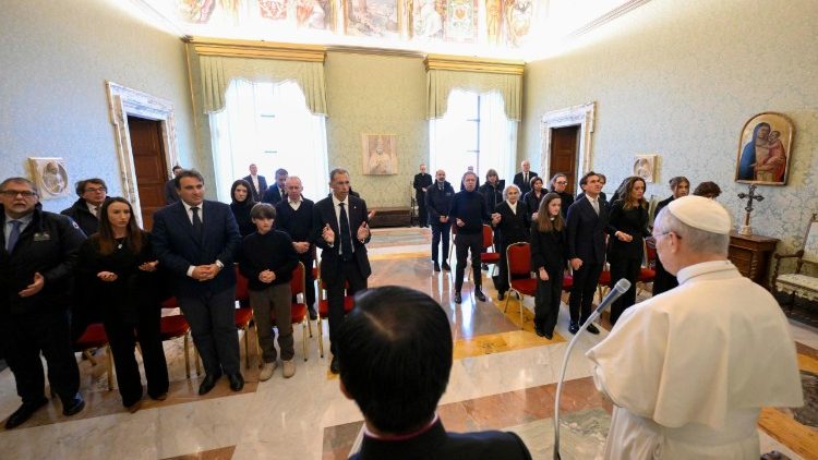Úprimne povedané, som veľmi dojatý, keď vás stretávam. Keď som sa dozvedel, že niekto z vašej strany požiadal o túto audienciu, hneď som povedal: „Áno, nájdeme čas.“ Chcel som mať aspoň príležitosť podeliť sa o chvíľu, ktorá je pre vás uprostred veľkej bolesti a utrpenia skutočne skúškou našej viery, skúškou toho, v čo veríme. A človek sa často pýta: „Prečo, Pane?“ Niekto mi pripomenul podobný moment: práve počas pohrebnej omše, kde namiesto kázania kňaz viedol akýsi dialóg medzi človekom a samotným Bohom, s tou otázkou, ktorá nás vždy sprevádza: „Prečo, Pane, prečo?“