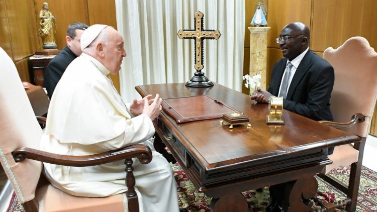 Ako čítame v oficiálnom komuniké Tlačového strediska Svätej stolice, boli vyzdvihnuté dobré vzťahy medzi oboma krajinami a „diskutovalo sa o niektorých aspektoch politickej a sociálno-ekonomickej situácie“ v Ghane, konkrétne o spolupráci v oblasti vzdelávania a zdravotníctva. Hovorilo sa aj o aktuálnom medzinárodnom dianí, pričom „osobitne sa poukázalo na bezpečnostné problémy v krajinách západnej Afriky a Guinejského zálivu“.