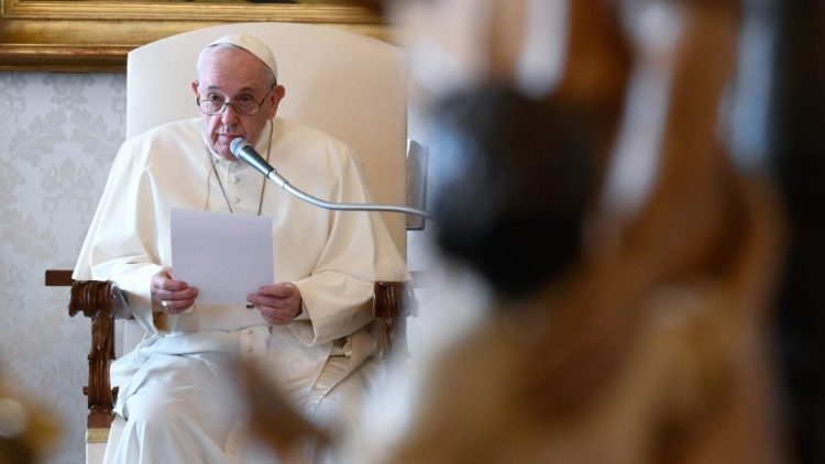 Papež Frančiške je med današnjo splošno avdienco, ki je potekala v knjižnici apostolske palače, govoril o Mariji kot ženi molitve. Ni boljšega načina molitve, kot je postaviti se v držo odprtosti kakor Marija, srce odpreti za Boga in reči: »Gospod, to, kar Ti želiš, kadar Ti želiš in kakor Ti želiš.« Po papeževih besedah gre za ponižno in preprosto molitev, ki naše življenje položi v Gospodove roke, tako da nas on vodi. Gre za molitev, ki zna pomiriti naše nemire in strahove. Če v molitvi razumemo, da je vsak dan, ki je podarjen od Boga, klic, potem razširimo srce in sprejmemo vse. Pomembno je prositi Gospoda za njegovo navzočnost na vsakem koraku naše poti.