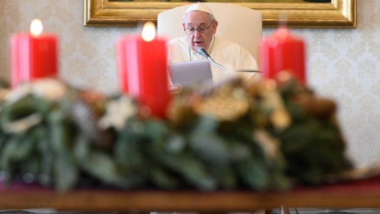 Naučimo se biti v pričakovanju, pričakovanju Gospoda. Gospod nas prihaja obiskat, ne samo med temi prazniki, ob božiču in veliki noči, ampak nas obiskuje vsak dan v globini našega srca, če smo v pričakovanju. Velikokrat se ne zavedamo, da je Gospod blizu, da trka na naša vrata, in mi ga pustimo iti mimo. »Bojim se, da bi Bog šel mimo in jaz tega ne bi opazil,« je dejal sveti Avguštin. Gospod gre mimo, Gospod prihaja, Gospod trka. A če imaš ušesa polna raznega hrupa, ne boš slišal Gospodovega klica. Bratje in sestre, biti v pričakovanju: to je molitev. Hvala.