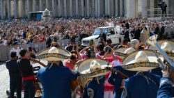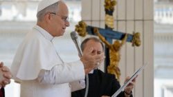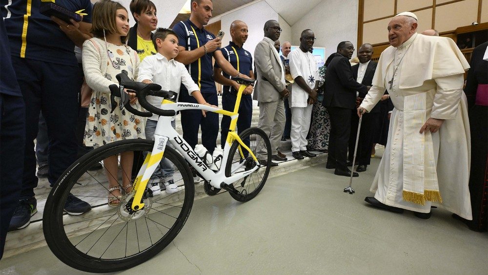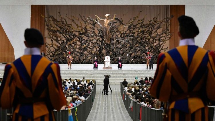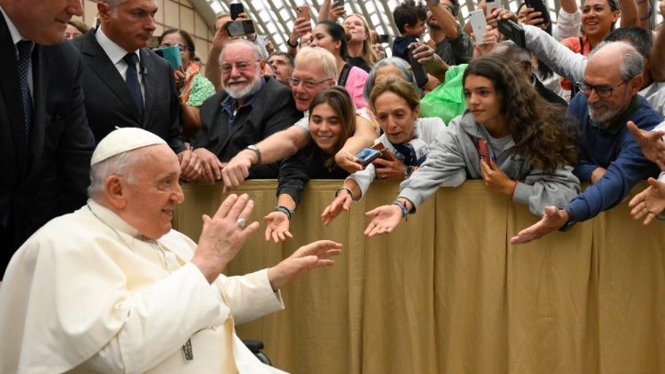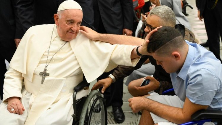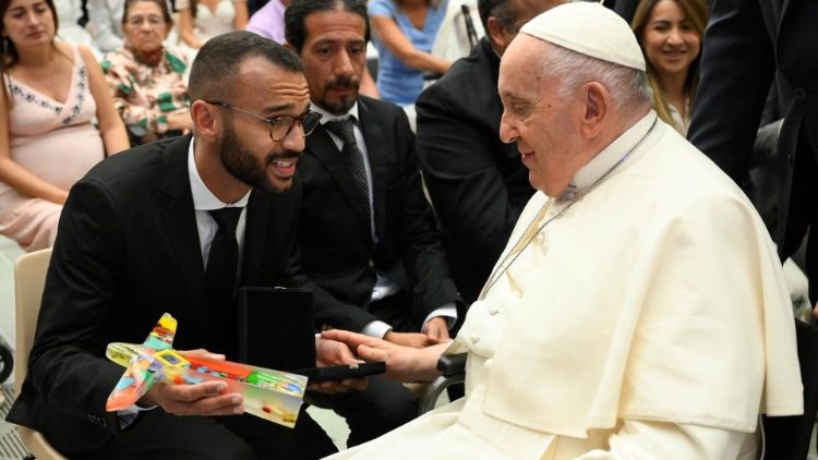 Medtem ko se v Ukrajini in drugod po svetu bojuje in se v nekaterih skritih dvoranah načrtuje vojna – to načrtovanje vojne je strašno –, je svetovni dan mladih vsem pokazal, da je mogoč tudi drugačen svet: svet bratov in sester, kjer zastave vseh narodov vihrajo skupaj, druga ob drugi, brez sovraštva, brez strahu, brez zapiranja, brez orožja! Sporočilo mladih je bilo jasno: ali mu bodo »mogočneži sveta« prisluhnili? Ali bodo prisluhnili temu navdušenju mladih, ki hočejo mir? To je prilika za naš čas. Tudi danes Jezus pravi: »Kdor ima ušesa, naj posluša! Kdor ima oči, naj gleda!« Upamo, da bo ves svet prisluhnil temu dnevu mladih in videl to lepoto mladih.