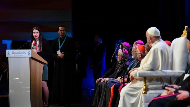 Prisrčno vas pozdravljam in sem hvaležen vsakemu od vas, da ste sprejeli povabilo kardinala Avelina in se udeležili teh srečanj. Zahvaljujem se vam za vaše delo in dragocena razmišljanja, ki ste jih podelili. Po Bariju in Firencah se pot v služenju sredozemskim narodom nadaljuje: tudi tu cerkveni in civilni voditelji niso skupaj, da bi se ukvarjali z medsebojnimi interesi, ampak zaradi želje, da bi poskrbeli za človeka; hvala, da to počnete skupaj z mladimi, ki so sedanjost in prihodnost Cerkve in družbe.
